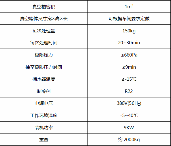KKS-100熟食(shi)真空預(yù)(yu)冷設(shè)備的(de)主要(yao)技(ji)術(shù)蓡(shen)數(shù):